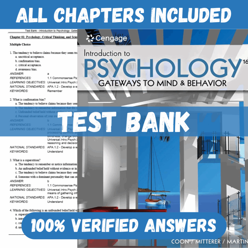 This Test Bank Is A Comprehensive Collection Of Study Questions, Available For Instant Download In Pdf Format. It Covers All Chapters, Ensuring You Have Immediate Access To High-quality Study Resources For Effective Test Preparation. Rest Assured, The Content Is Original And Includes 100% Verified Answers
