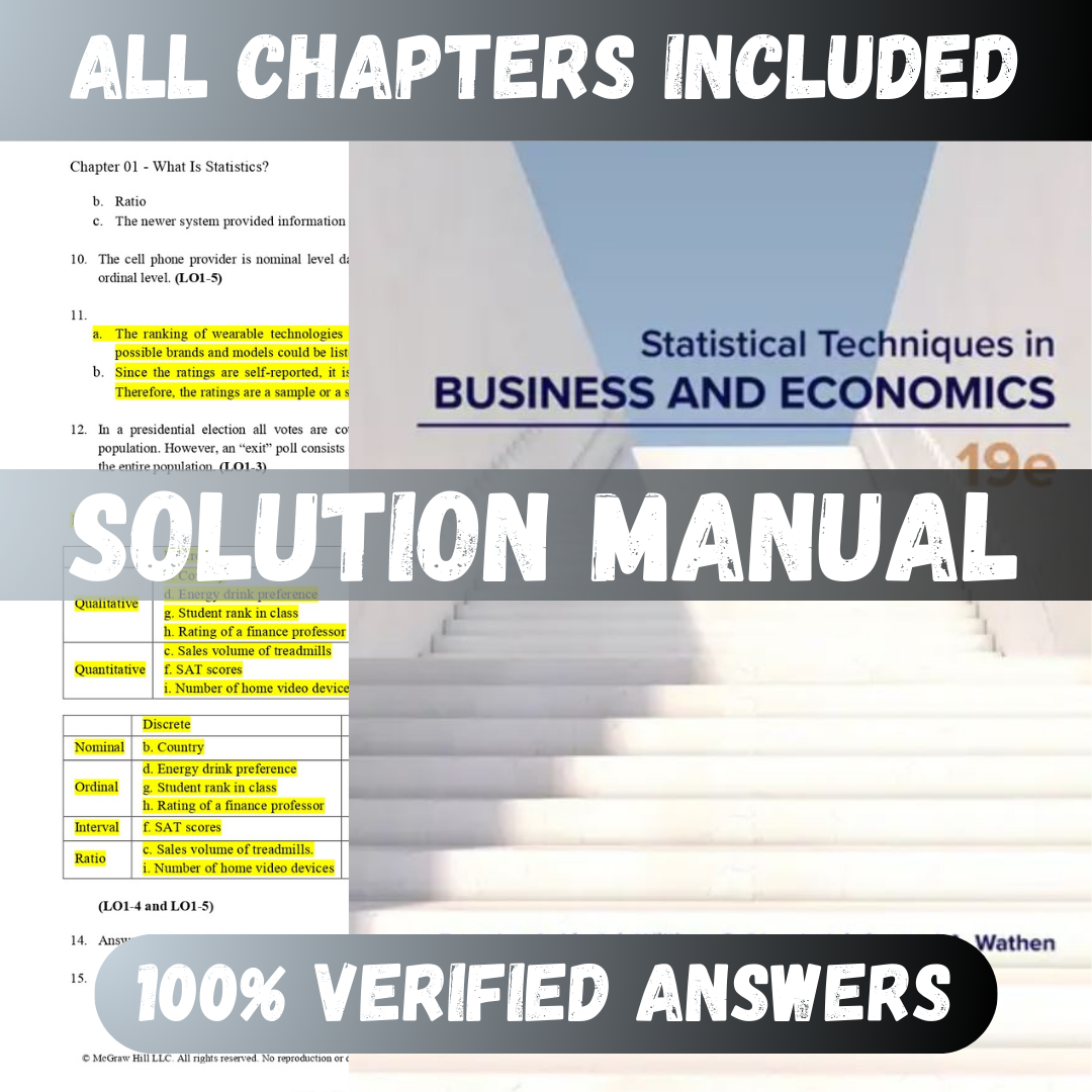 Solution Manual for Statistical Techniques in Business and Economics, 19th Edition (Lind, 2023)