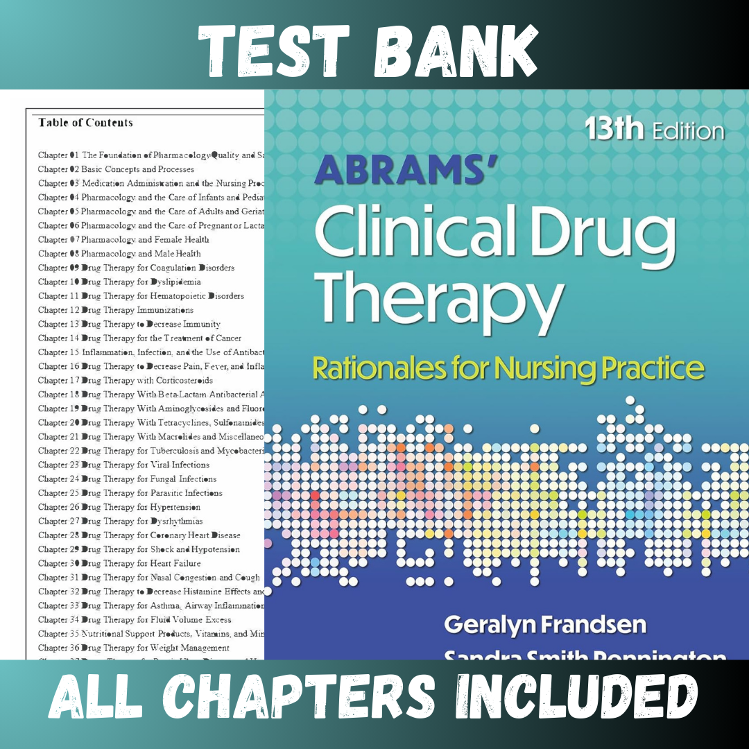 Test Bank – Abrams’ Clinical Drug Therapy Rationales for Nursing Practice, 13th Edition by Frandsen