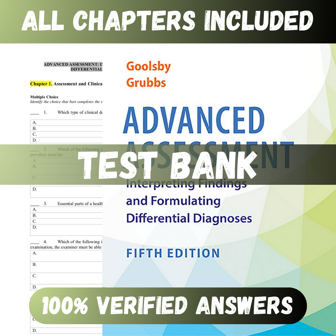 Test Bank Advanced Assessment Interpreting Findings and Formulating Differential Diagnoses 5th Edition (Goolsby, 2022)
