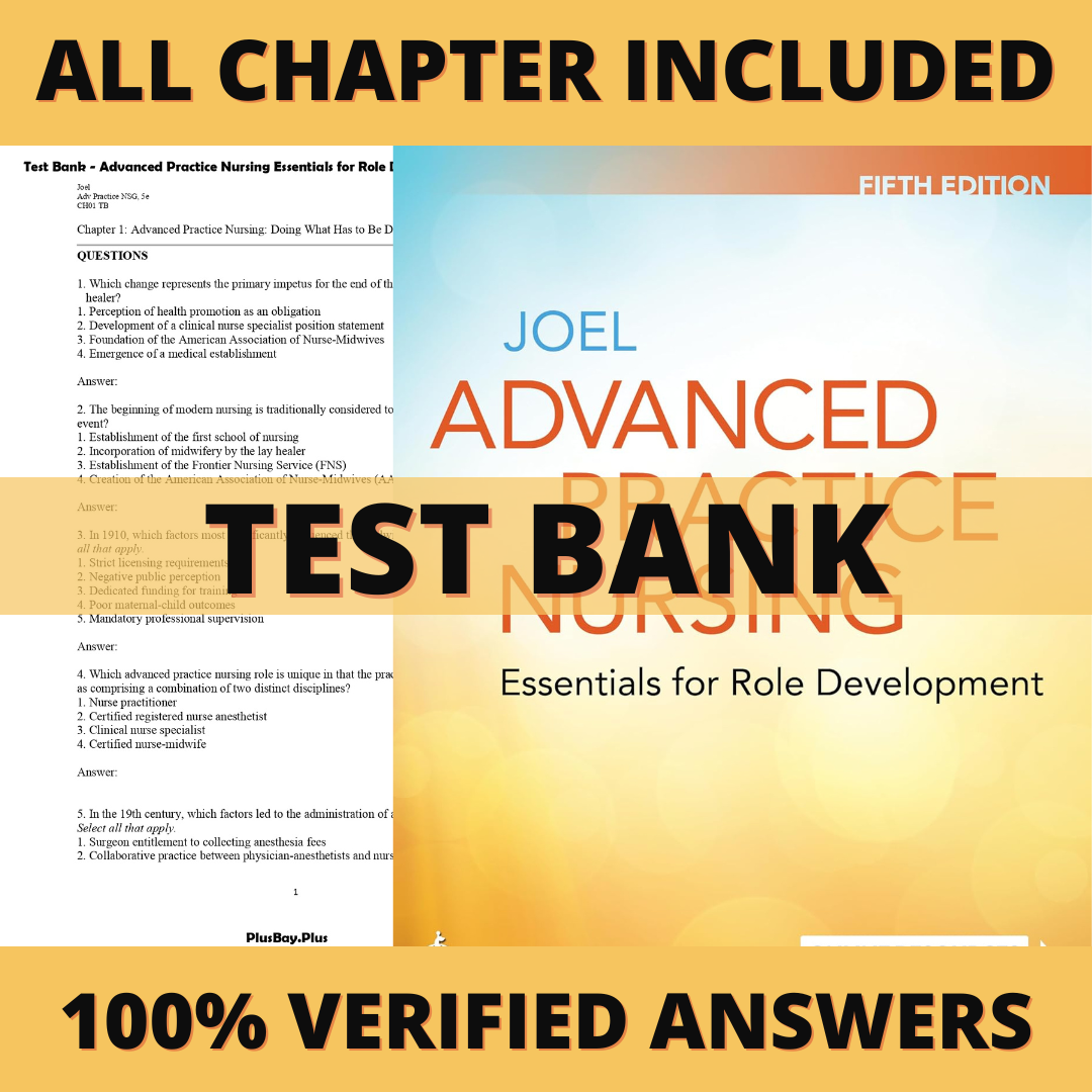 Test Bank for Advanced Practice Nursing Essentials for Role Development, 5th Edition (Joel, 2023)