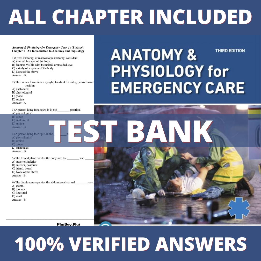 Test Bank for Anatomy & Physiology for Emergency Care, 3rd Edition (Bledsoe, 2020)