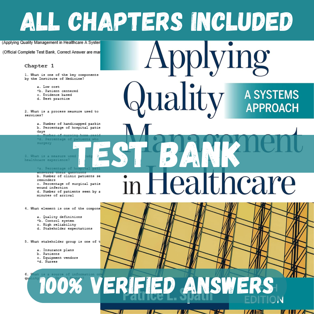 Test Bank for Applying Quality Management in Healthcare A Systems Approach 5th Edition By Patrice L. Spath