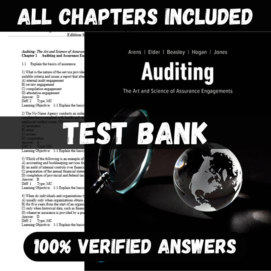 Test Bank for Auditing: The Art and Science of Assurance Engagements, 16th Canadian Edition by Arens