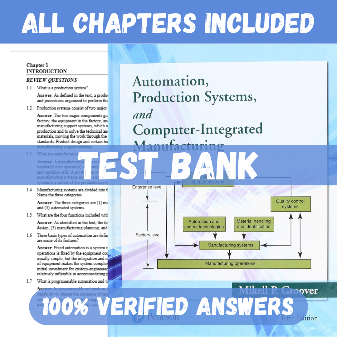 Test Bank for Automation, Production Systems, and Computer-Integrated Manufacturing, 5th Edition by Groover