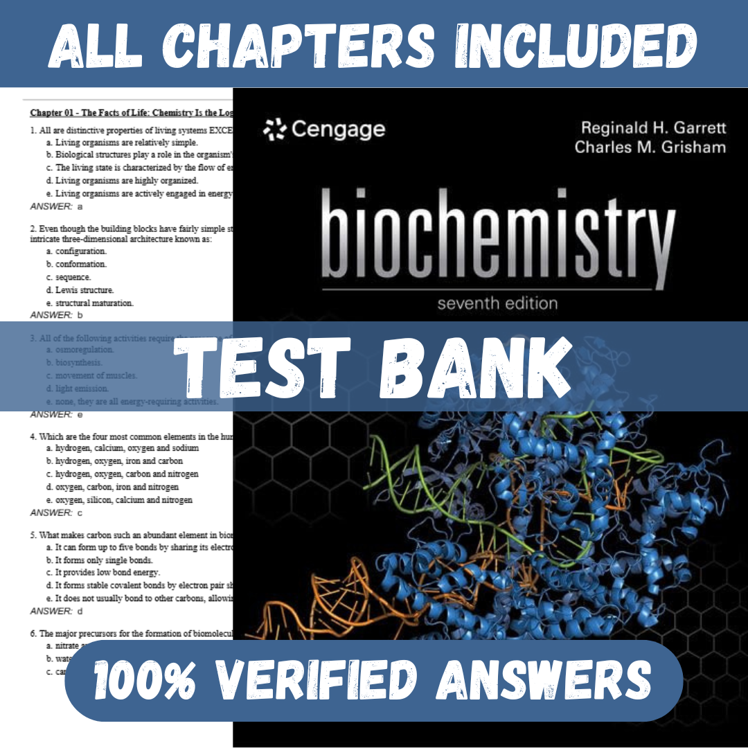 Test Bank for Biochemistry, 7th Edition by Garrett Grisham