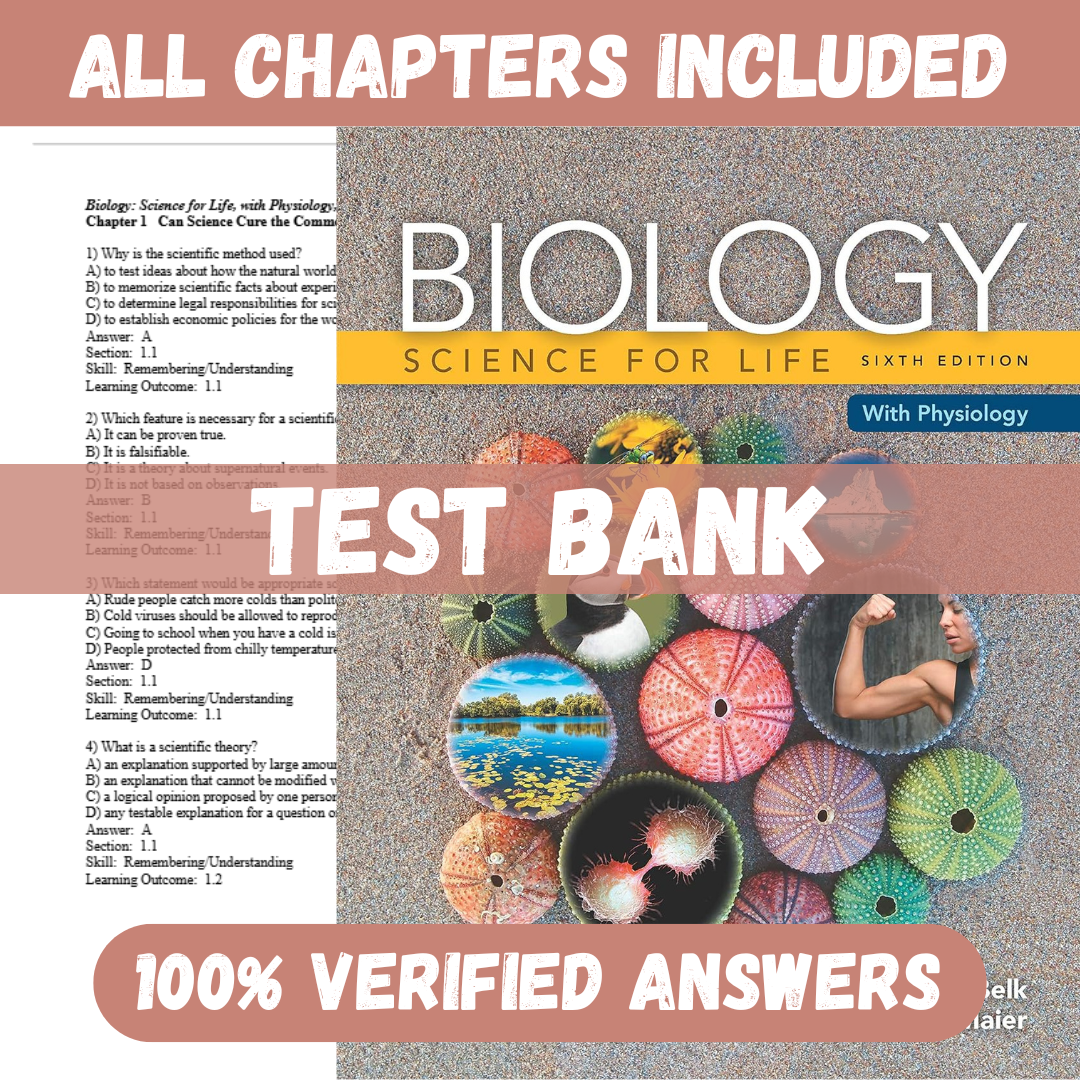 Test Bank for Biology: Science for Life with Physiology, 6th edition by Colleen Belk