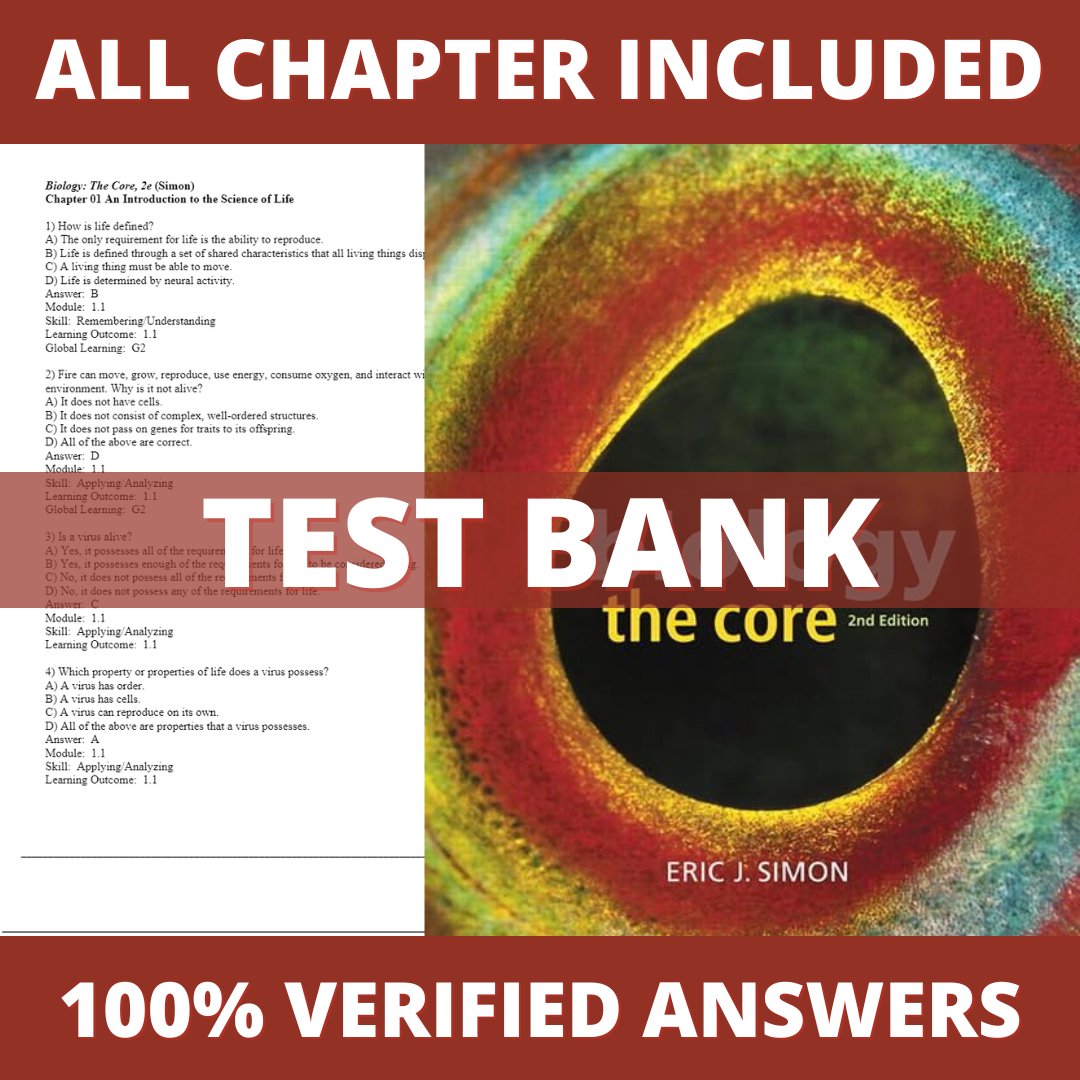 Test Bank for Biology The Core, 2nd Edition (Simon, 2017)