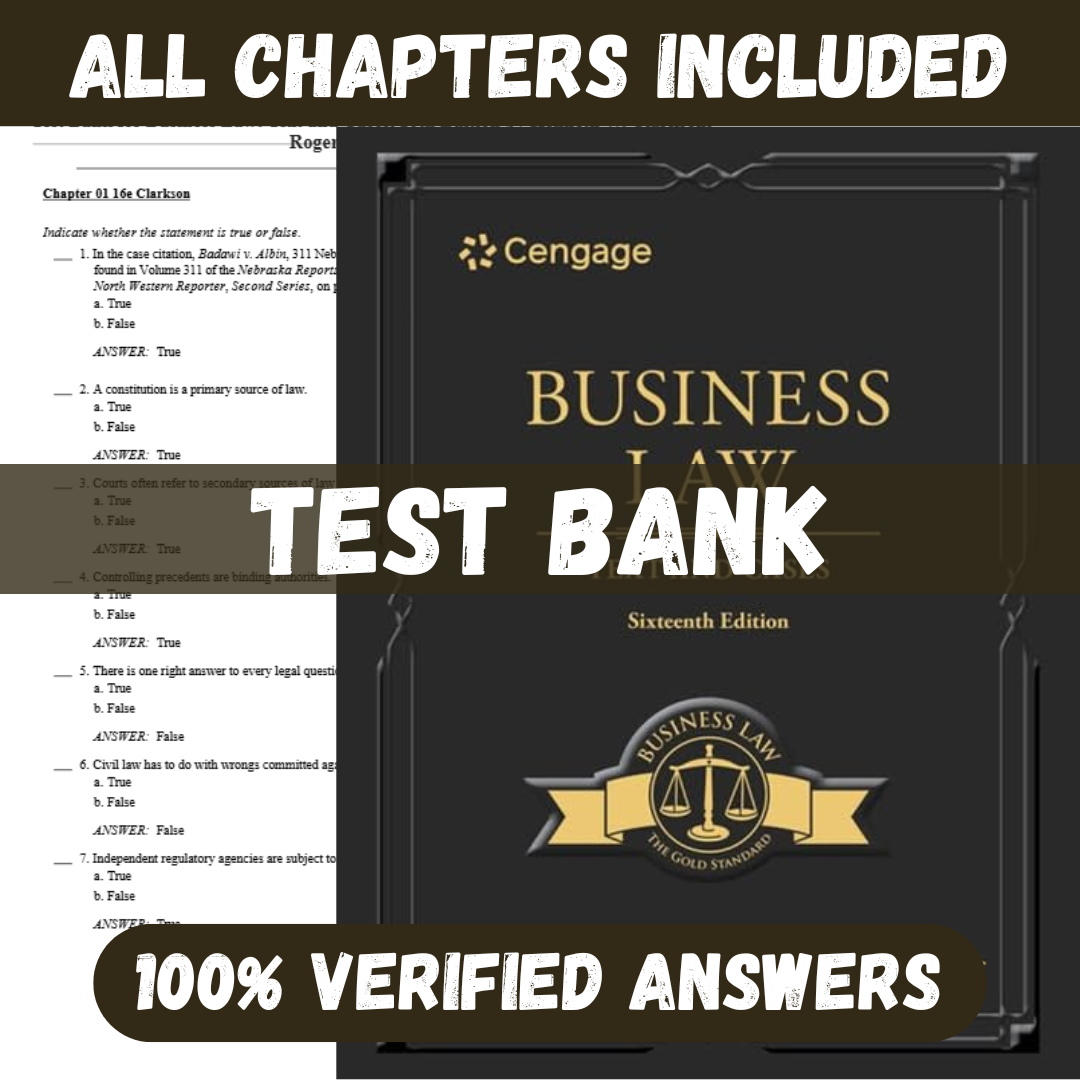 Test Bank for Business Law: Text and Cases, 16th Edition by Kenneth W. Clarkson
