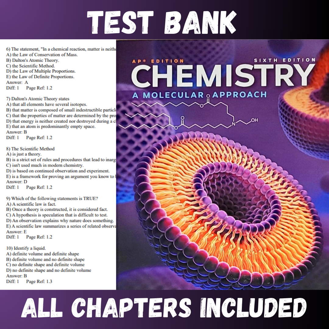 Test Bank for Chemistry, A Molecular Approach, AP Edition, Sixth Edition (Nivaldo) | All Chapters