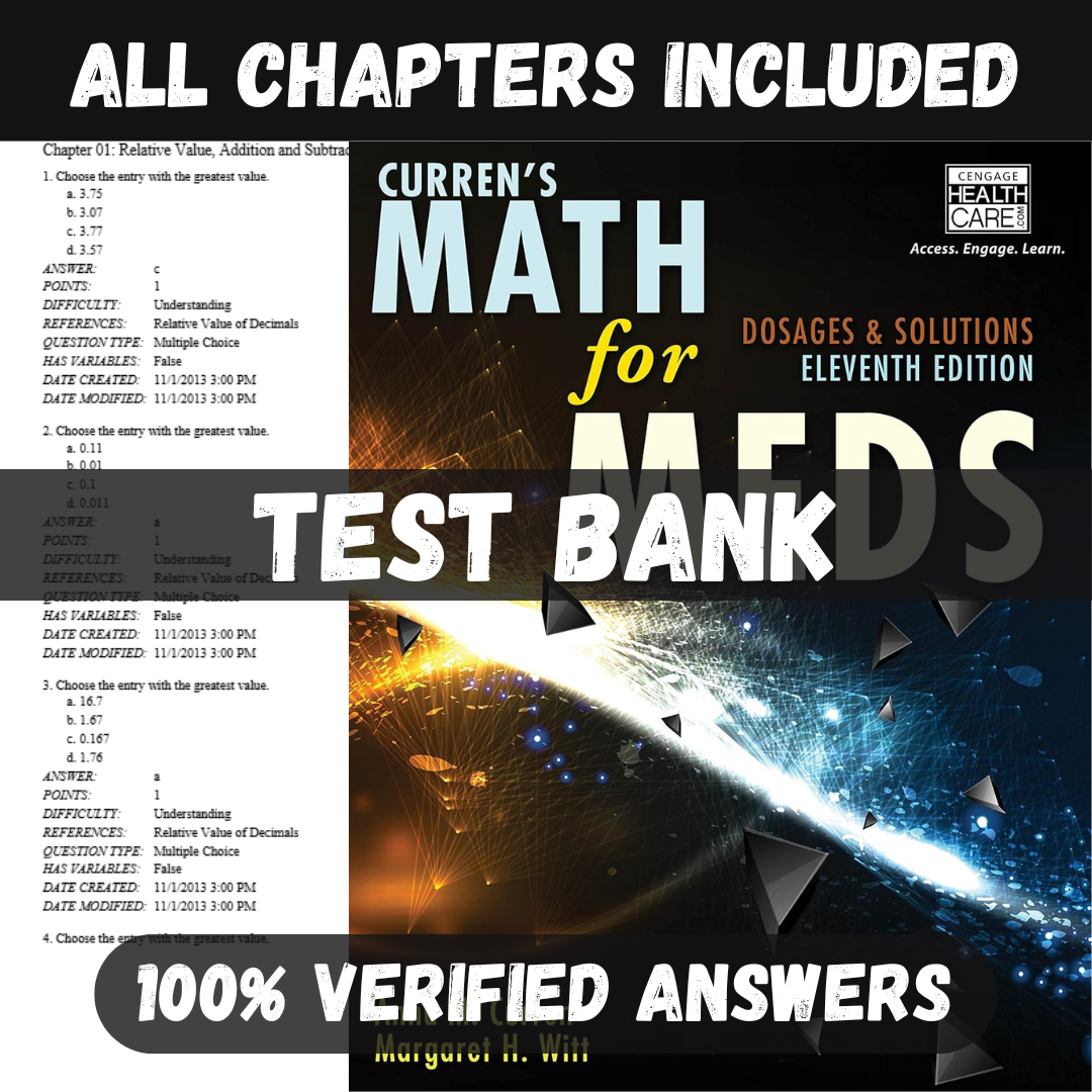 Test Bank for Curren’s Math for Meds Dosages and Solutions 11th Edition By Curren