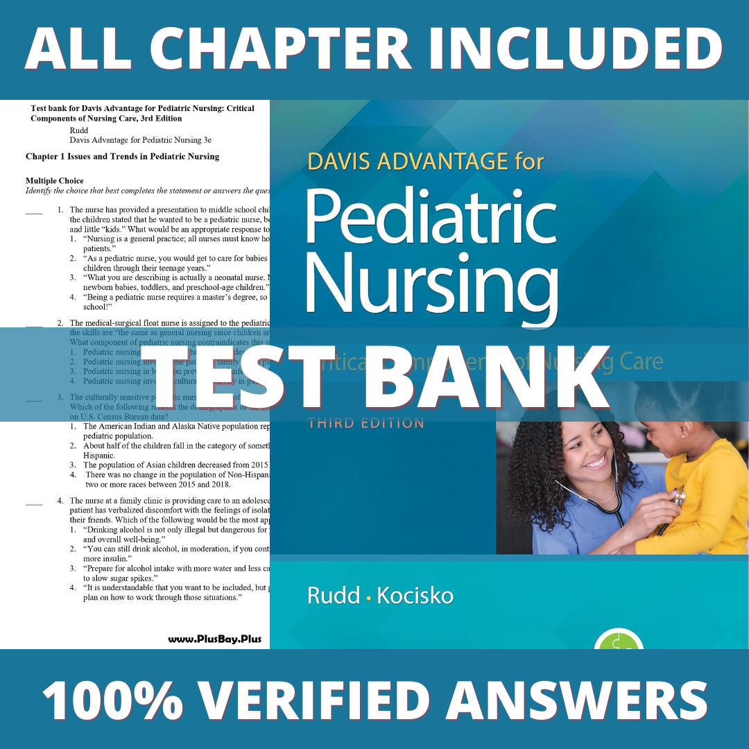 Test Bank for Davis Advantage for Pediatric Nursing Critical Components of Nursing Care 3rd Edition (Kathryn Rudd, 2023)