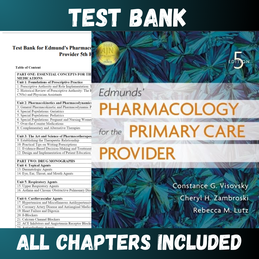Test Bank for Edmunds’ Pharmacology for the Primary Care Provider 5th Edition (Constance) | All Chapters