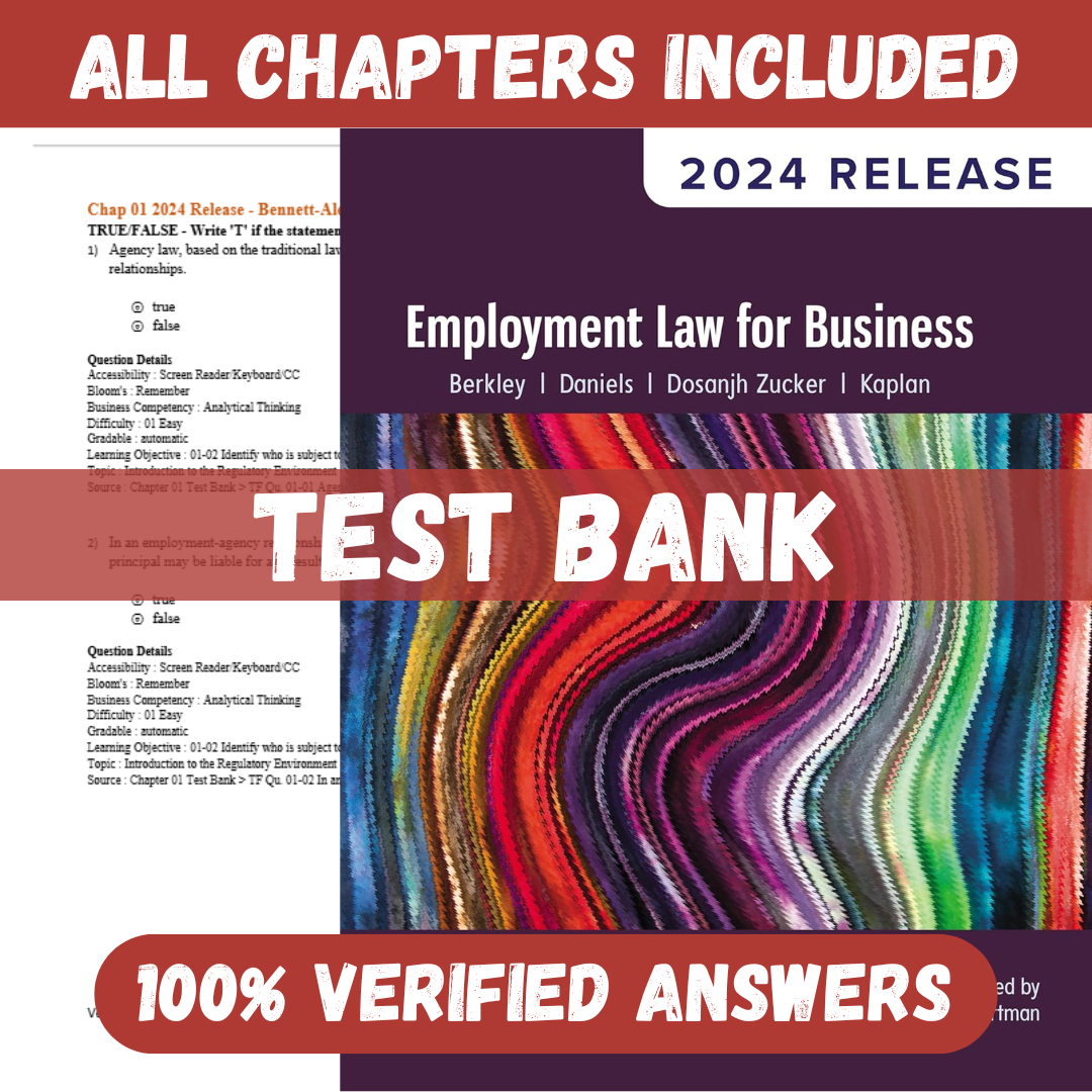 Test Bank for Employment Law for Business, 2024 Release by Bennett-Alexander