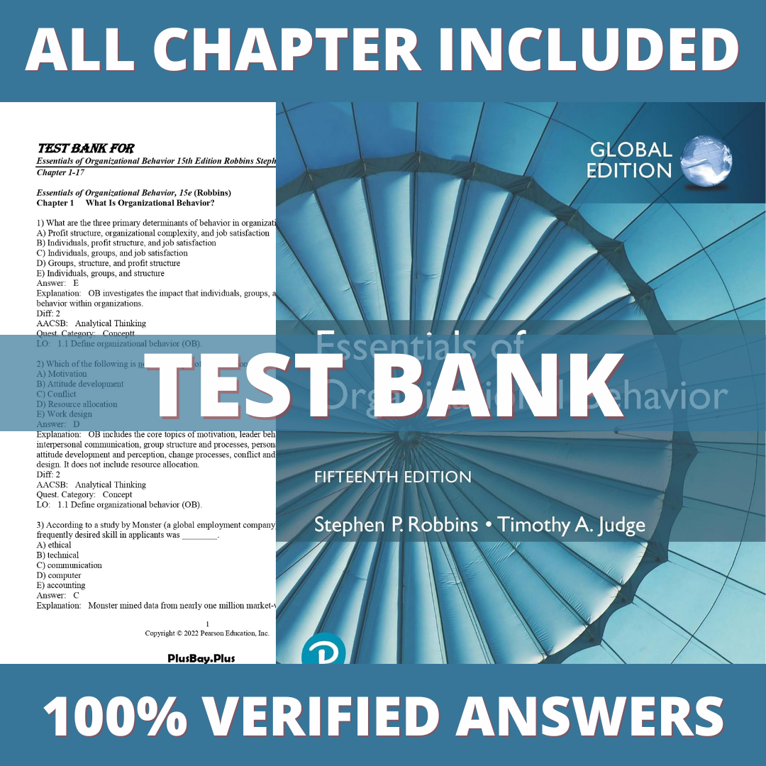 Test Bank for Essentials of Organizational Behavior, Global Edition 15th Edition (Robbins, 2021)