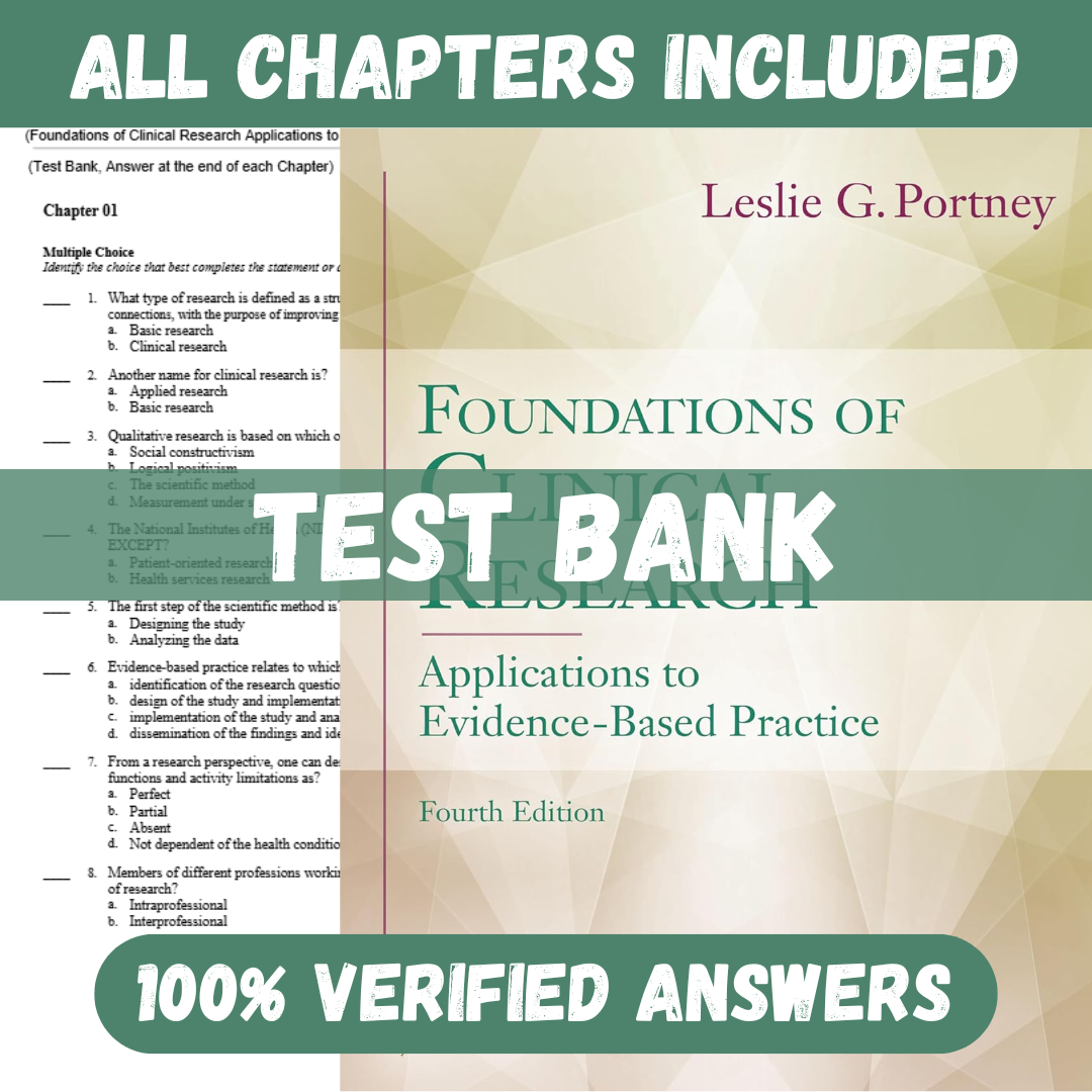 Test Bank for Foundations of Clinical Research Applications to Evidence-Based Practice 4th Edition by Portney
