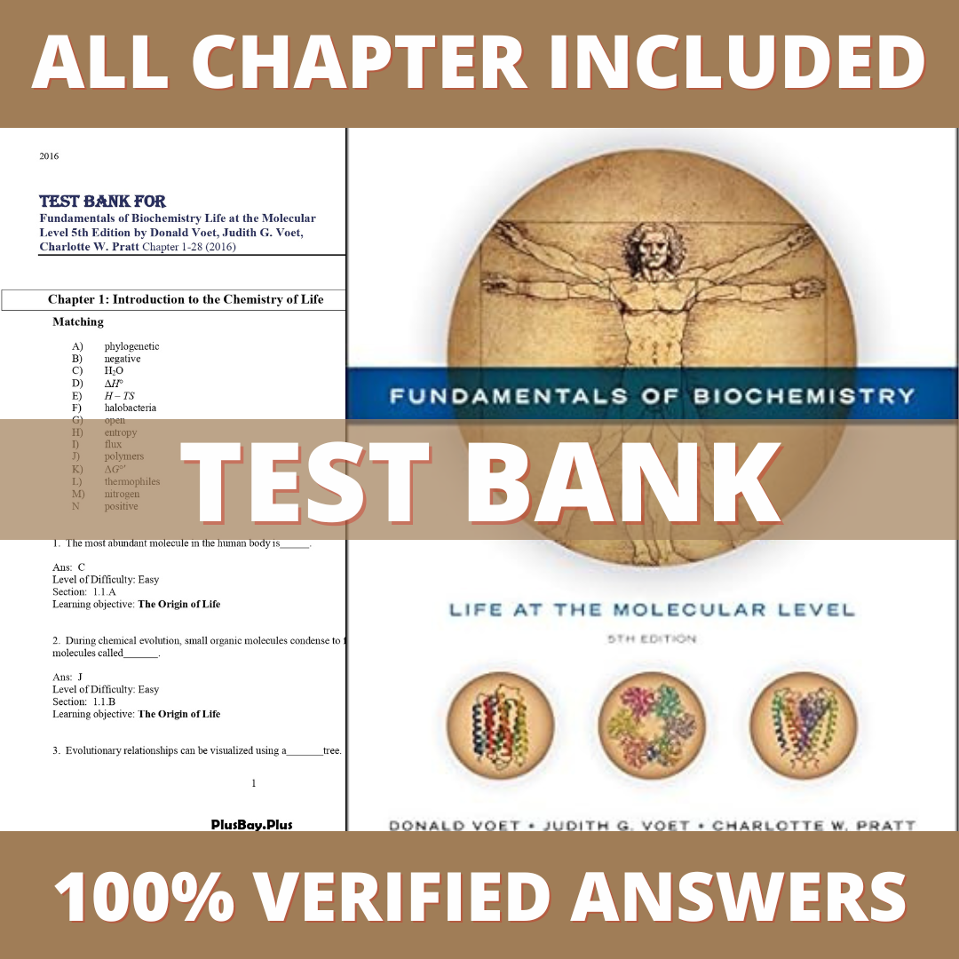 Test Bank for Fundamentals of Biochemistry Life at the Molecular Level 5th Edition (Voet, 2016)