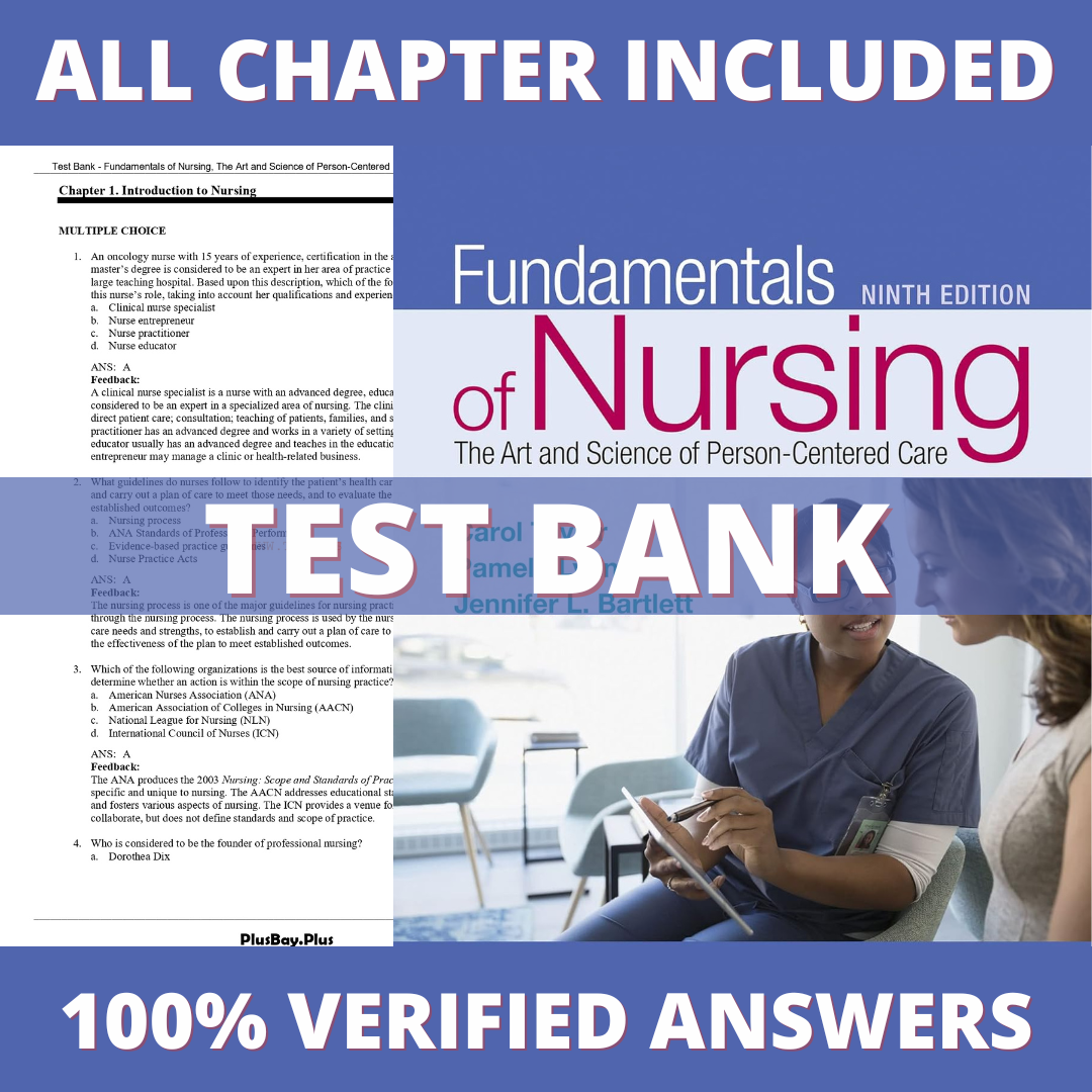 Test Bank for Fundamentals of Nursing The Art and Science of Person-Centered Care, 9th Edition (Taylor, 2019)