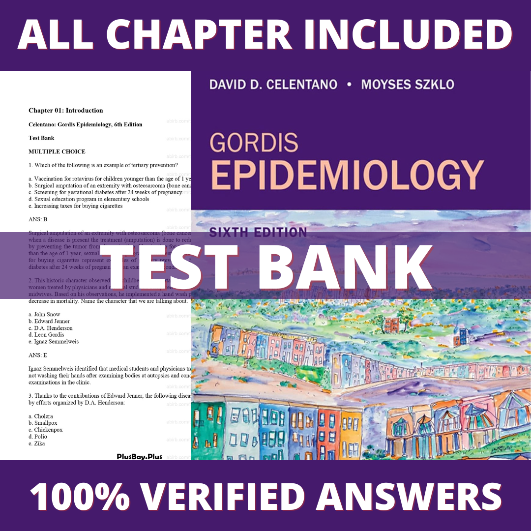 Test Bank for Gordis Epidemiology 6th Edition (Celentano, 2020)
