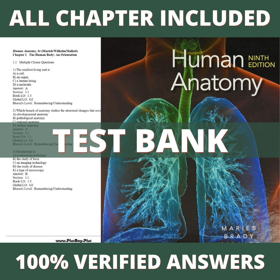 Test Bank for Human Anatomy, 9th Edition (Marieb, 2020)