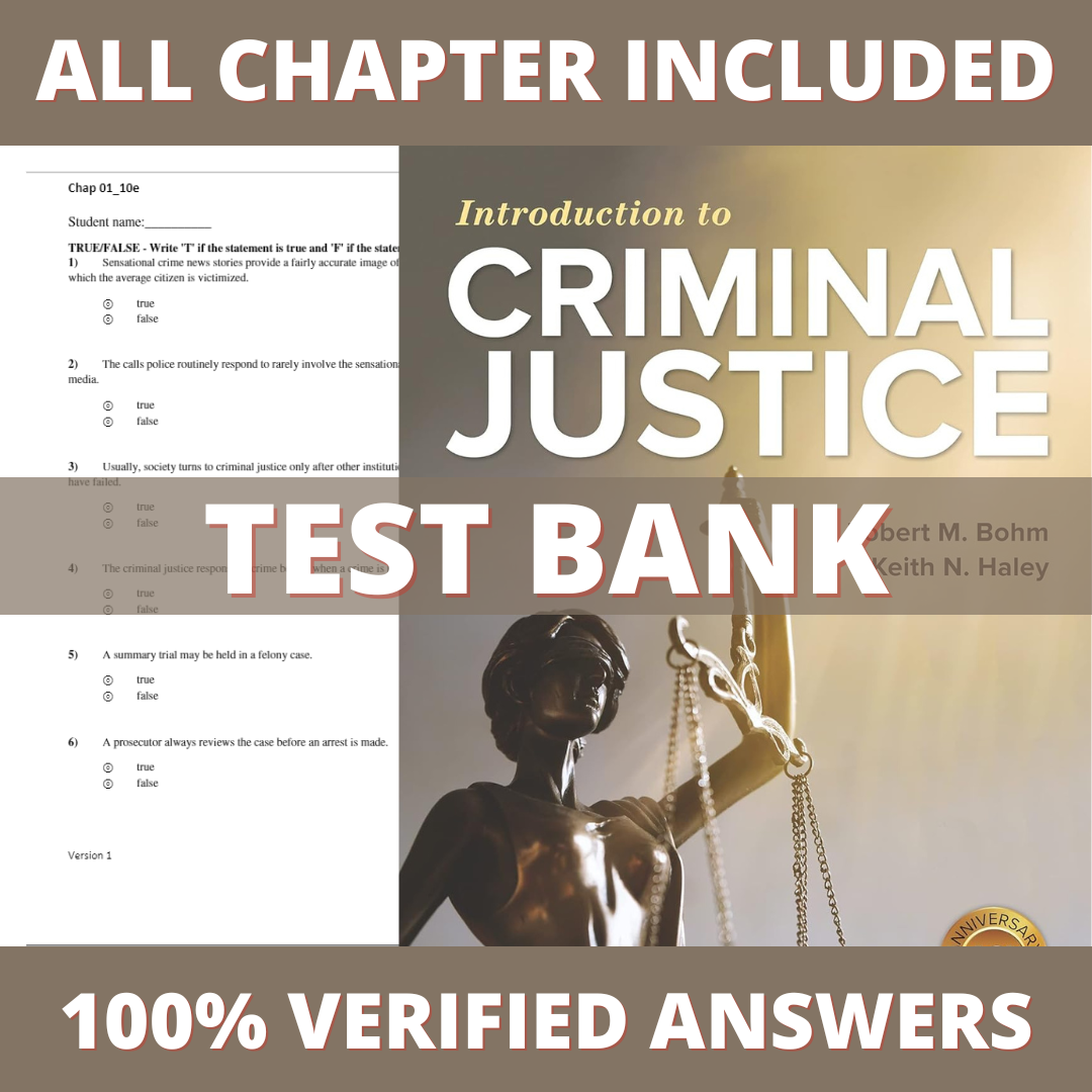 Test Bank for Introduction to Criminal Justice 10th Edition (Bohm, 2020)