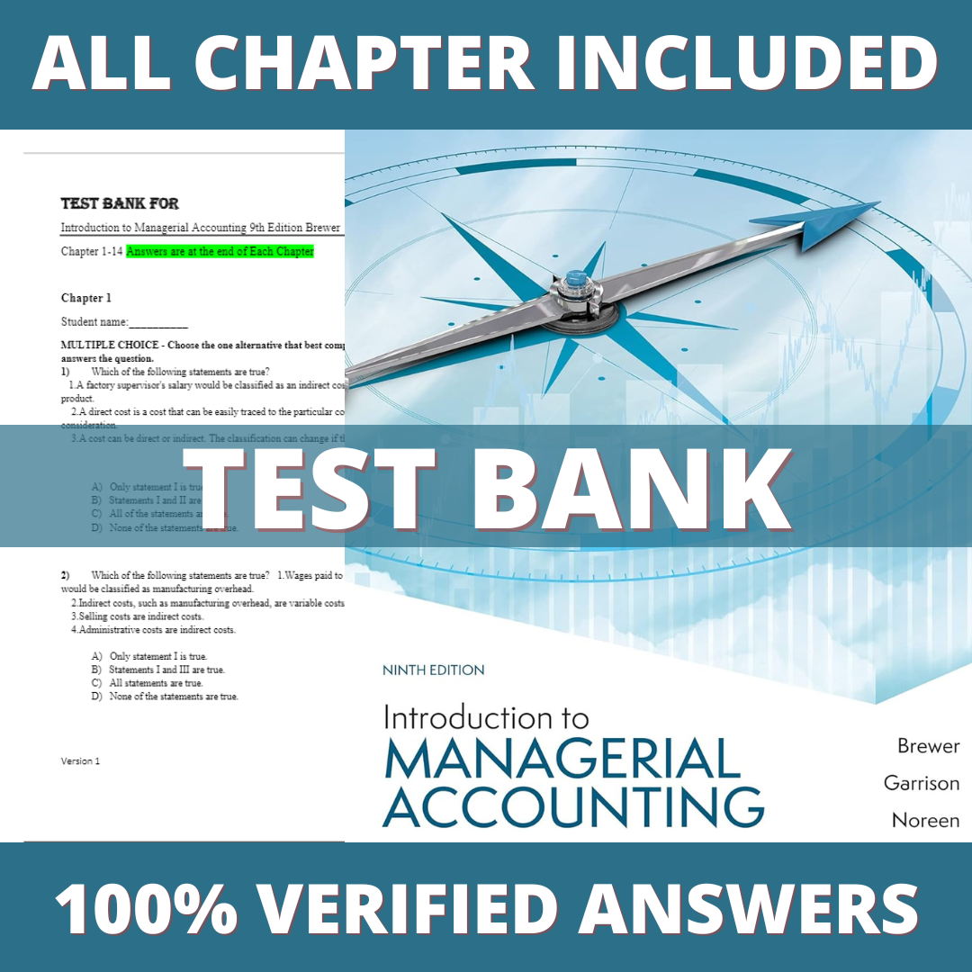 Test Bank for Introduction to Managerial Accounting 9th Edition (Brewer, 2021)
