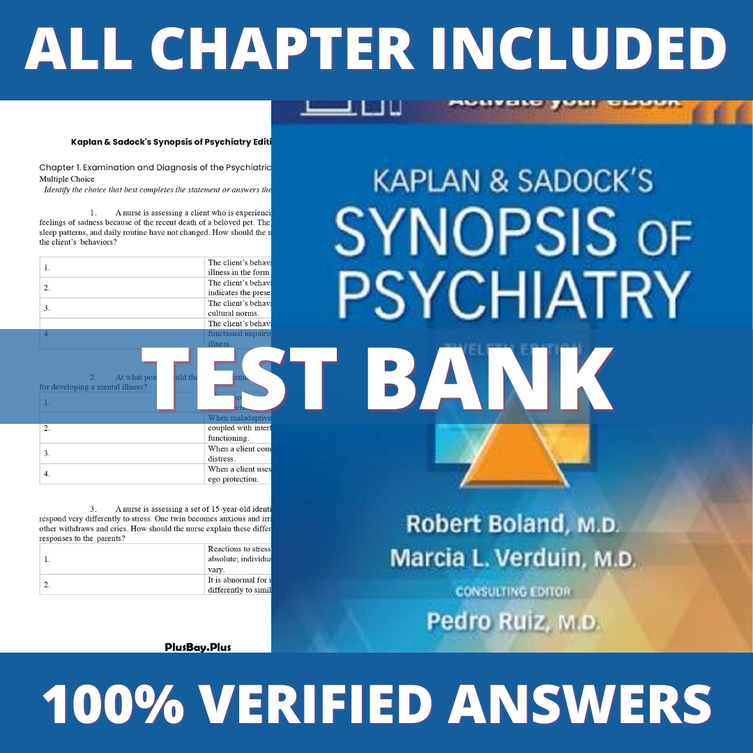 Test Bank for Kaplan & Sadock’s Synopsis of Psychiatry 12th Edition (Boland, 2021)