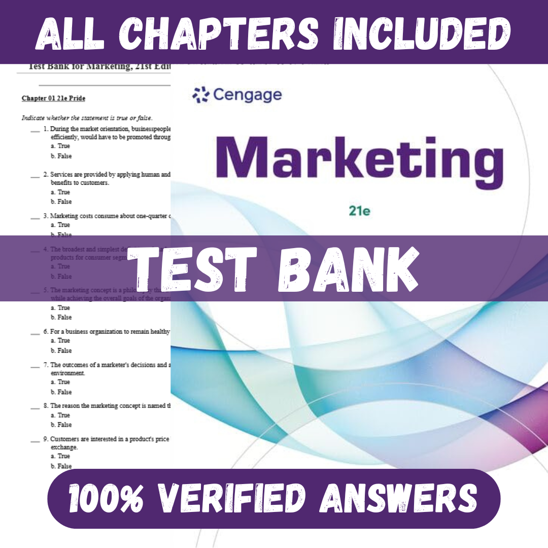 Test Bank for Marketing, 21st Edition by William M. Pride