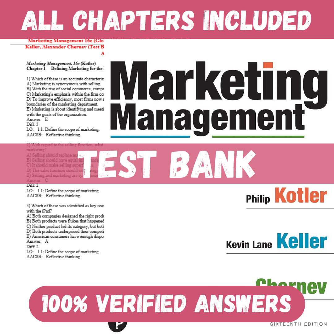 Test Bank for Marketing Management 16th Edition (Global Edition) By Philip Kotler