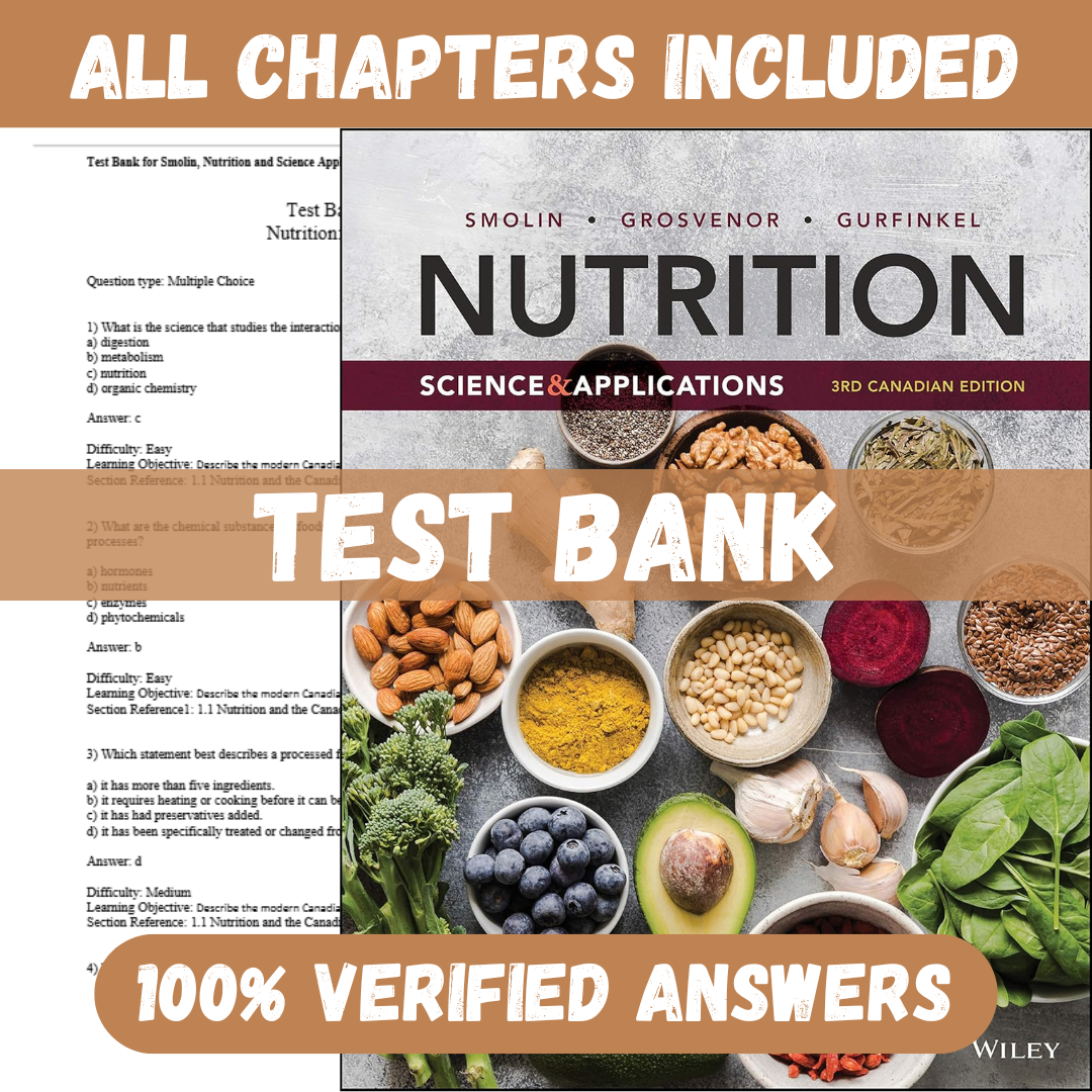 Test Bank for Nutrition Science and Applications 3rd Canadian Edition by Lori Smolin