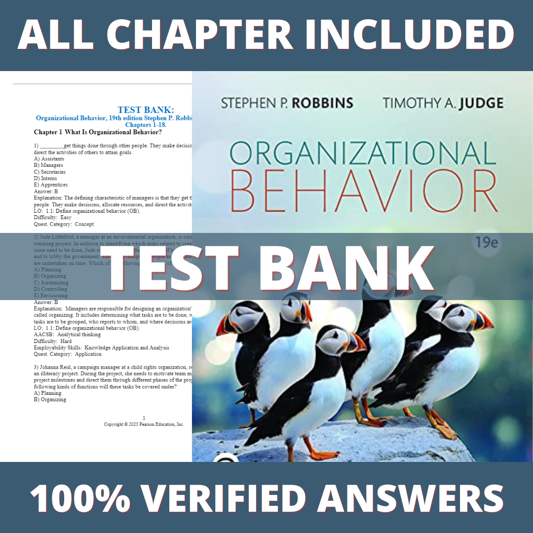 Test Bank for Organizational Behavior, Global 19th Edition (Robbins, 2022)