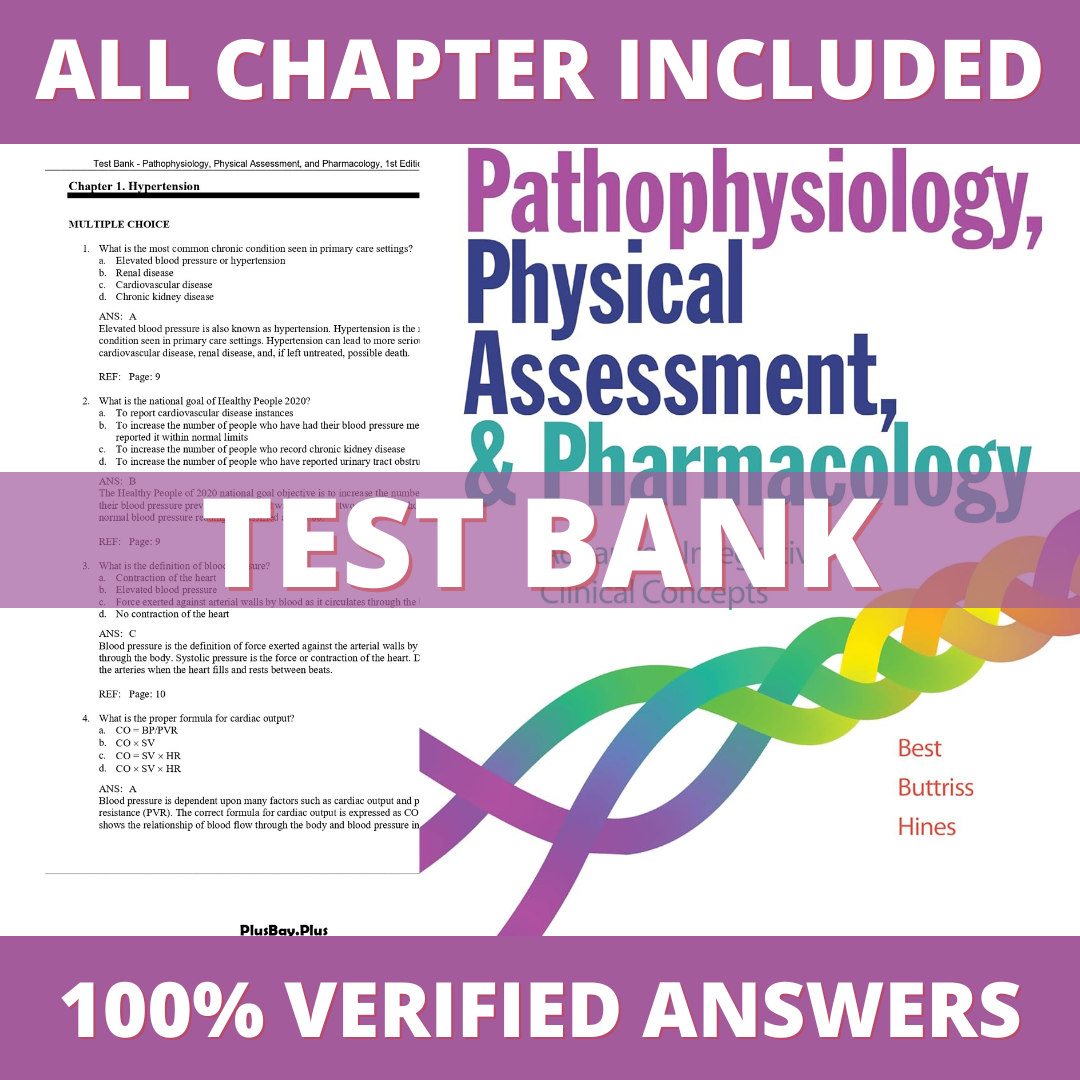 Test Bank for Pathophysiology, Physical Assessment, and Pharmacology, 1st Edition (Best, 2022)