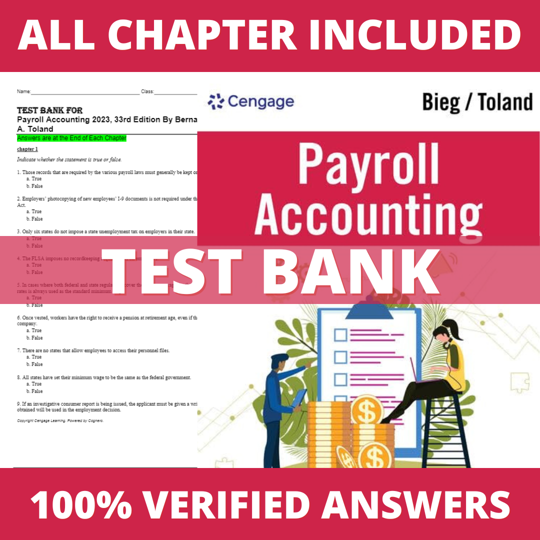 Test Bank for Payroll Accounting 2023, 33rd Edition (Bieg, 2022)