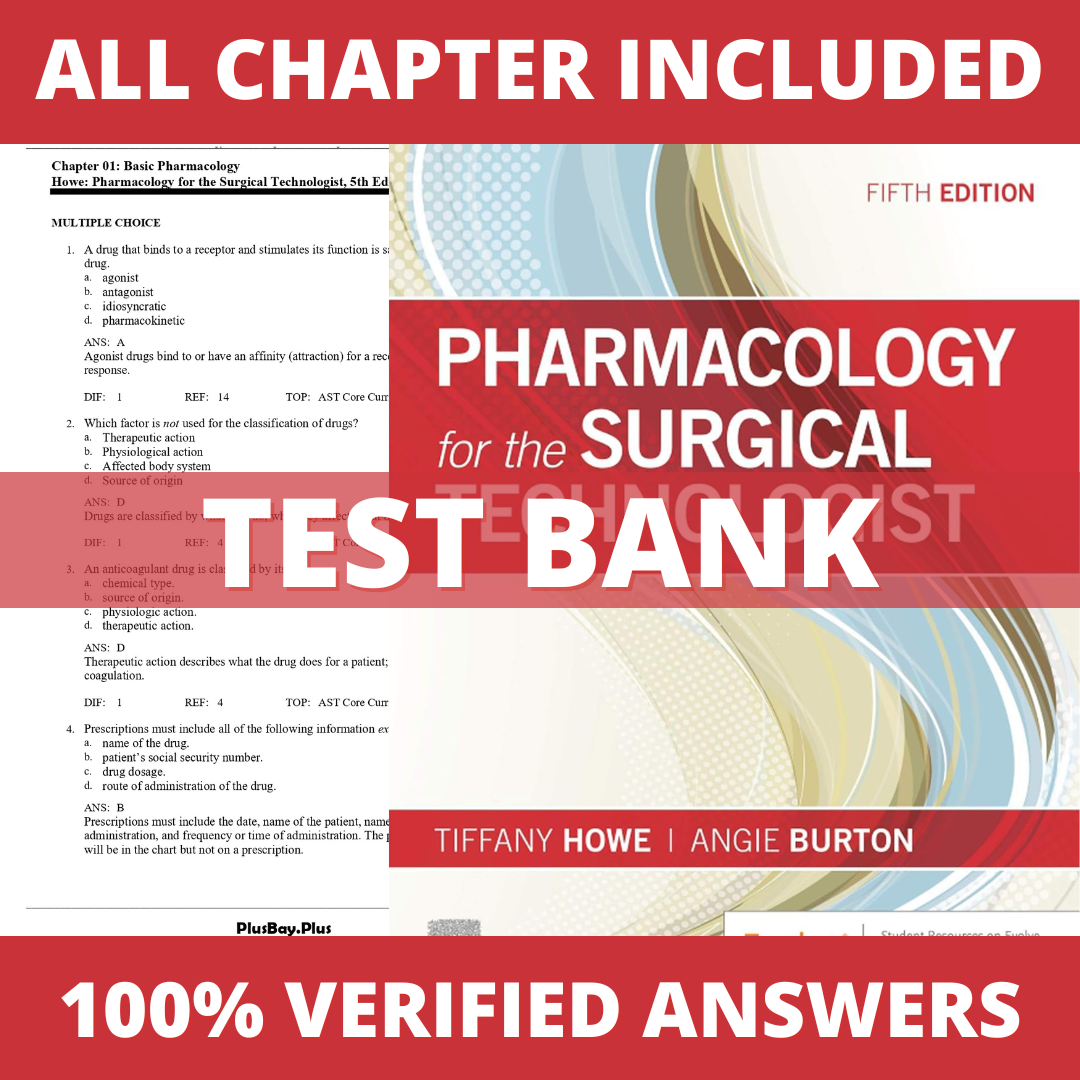 Test Bank for Pharmacology for the Surgical Technologist 5th Edition (Howe, 2020)