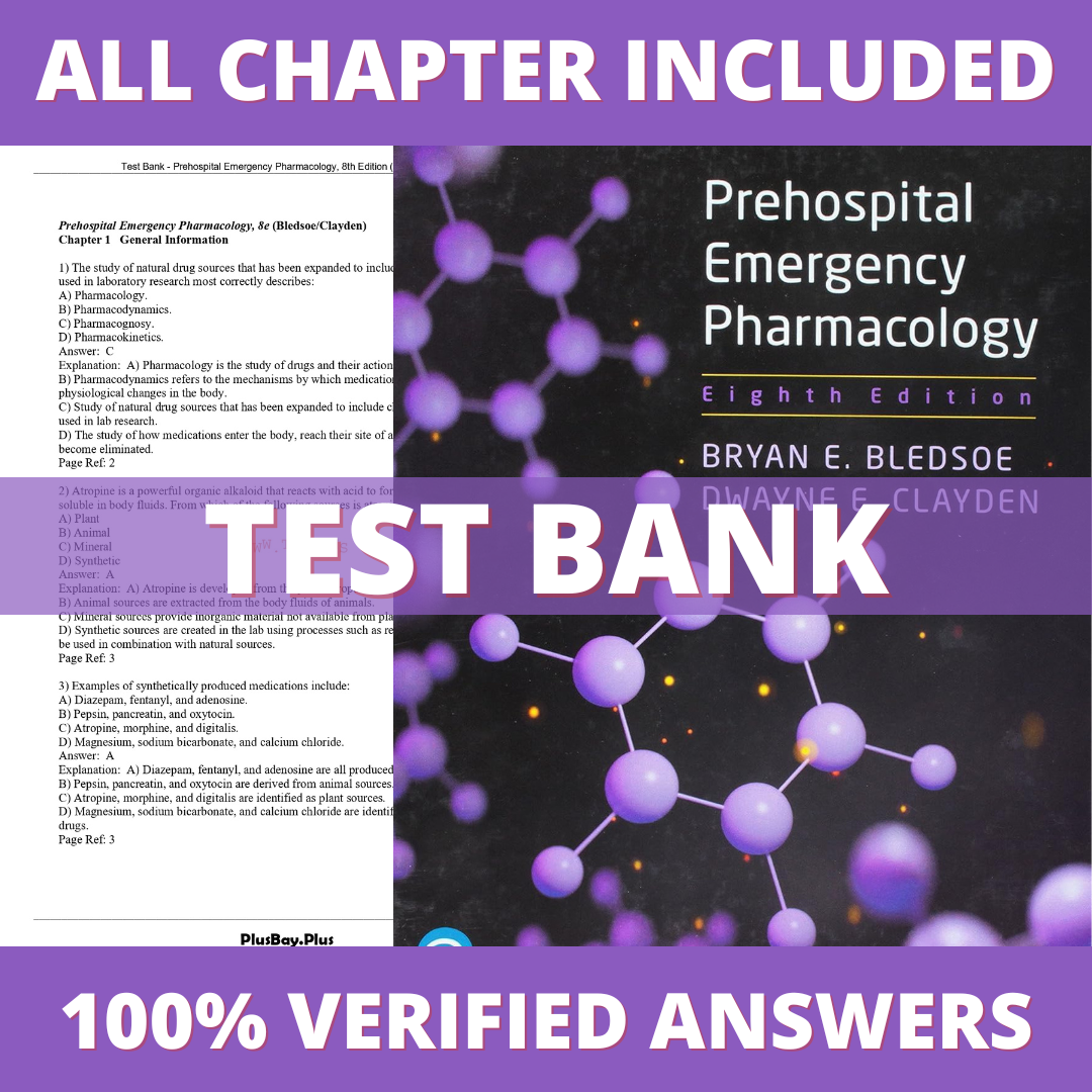 Test Bank for Prehospital Emergency Pharmacology, 8th Edition (Bledsoe, 2018)