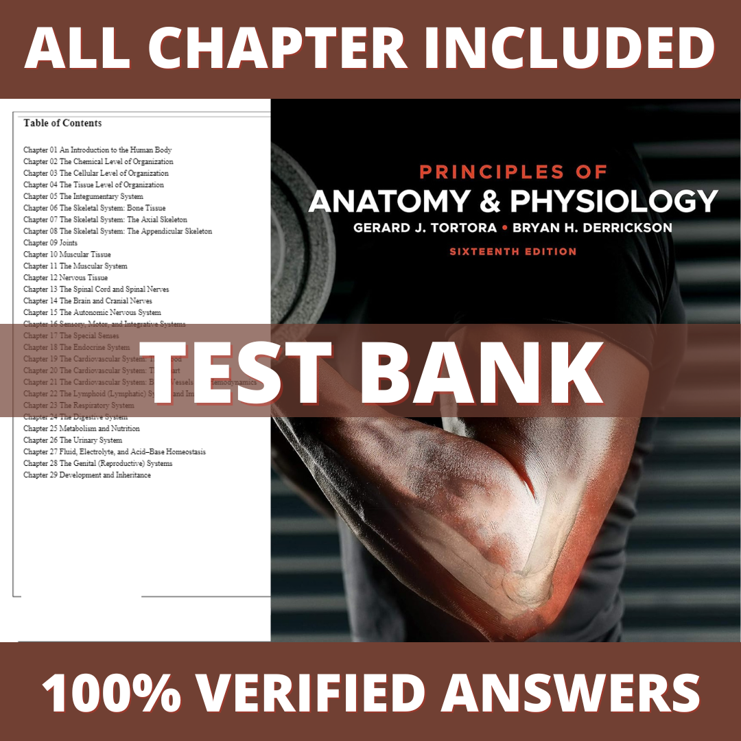 Test Bank for Principles of Anatomy and Physiology 16th Edition (Tortora, 2021)