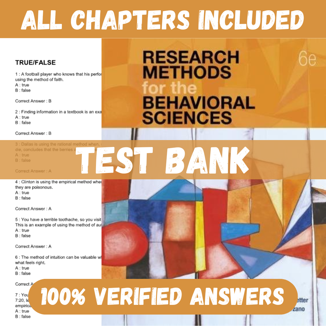 Test Bank for Research Methods for the Behavioral Sciences 6th Edition by Gravetter