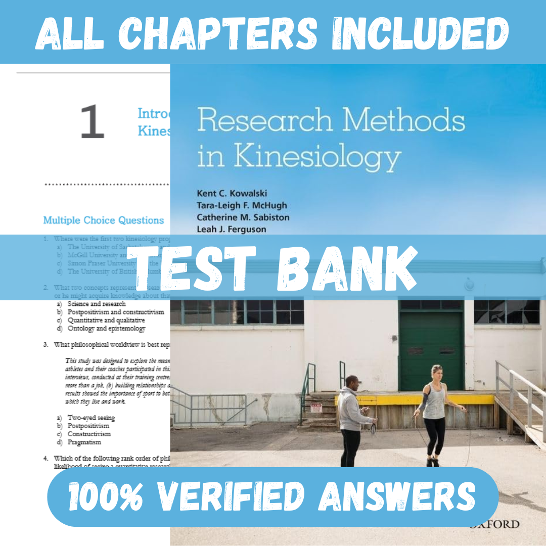 Test Bank for Research Methods in Kinesiology 1st Edition by Kent Kowalski