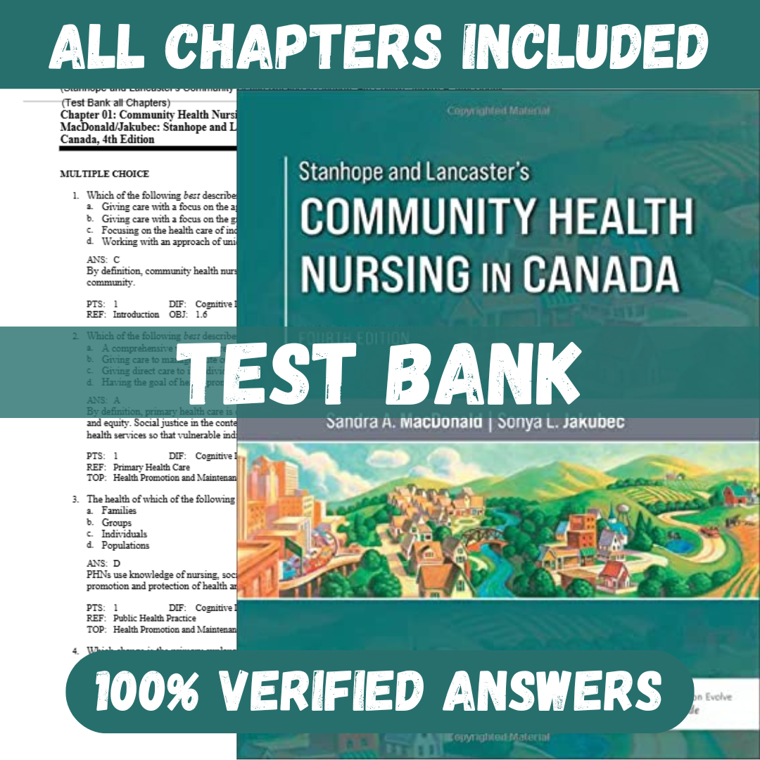 Test Bank for Stanhope and Lancaster’s Community Health Nursing in Canada 4th Edition By Sandra A. MacDonald