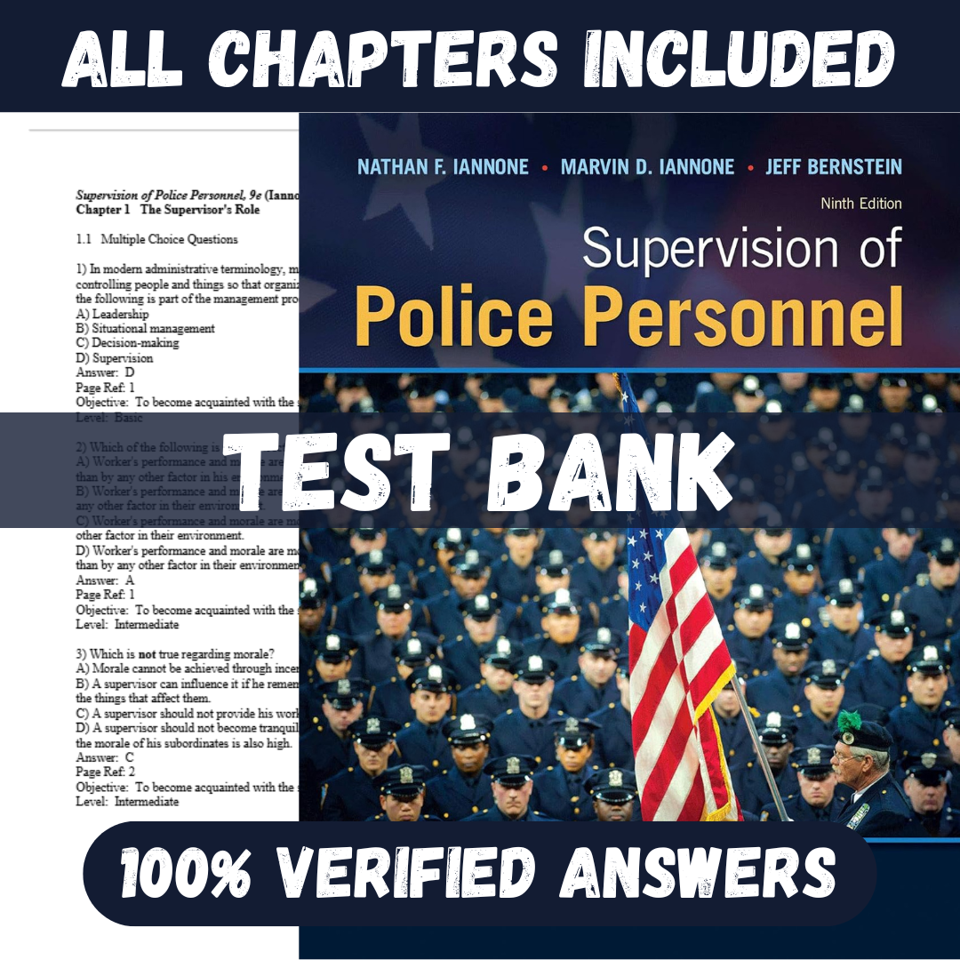 Test Bank for Supervision of Police Personnel 9th Edition (Global Edition) By Nathan Iannone