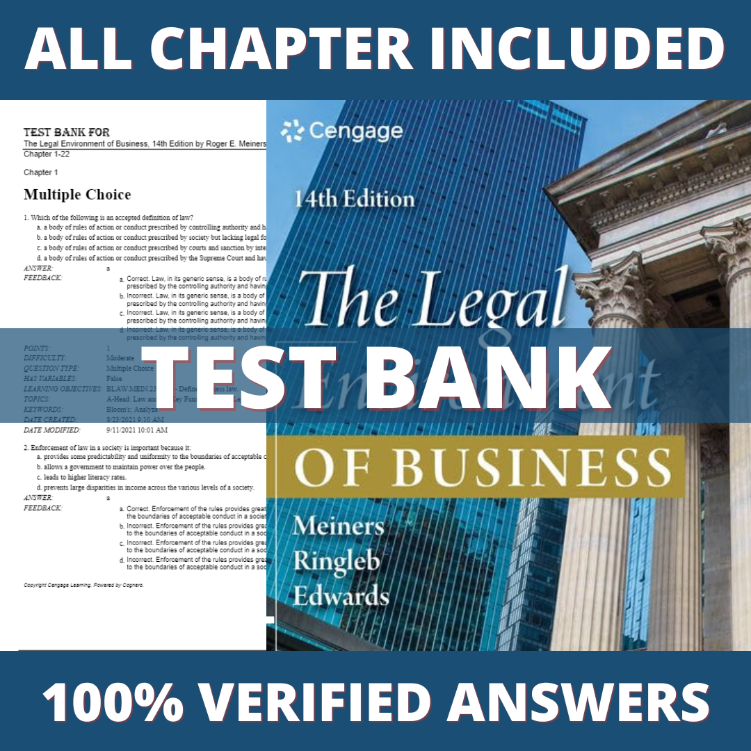 Test Bank for The Legal Environment of Business 14th Edition (Meiners, 2023)