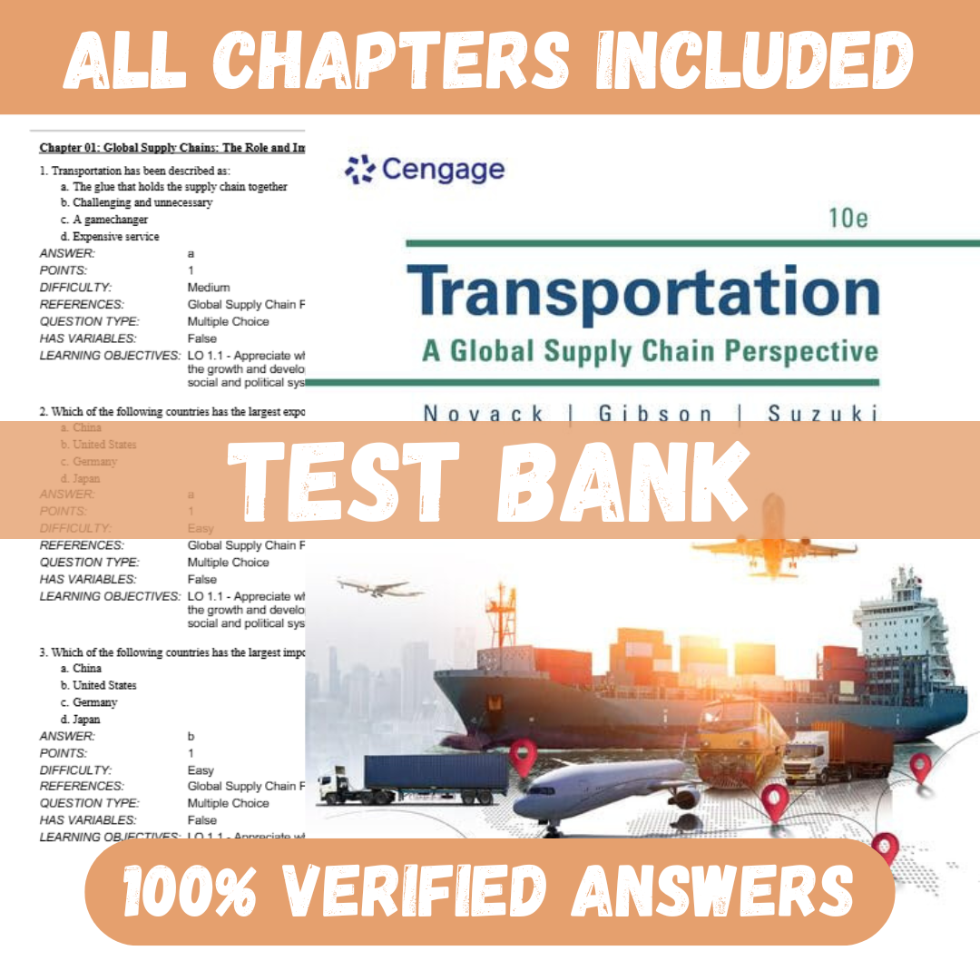 Test Bank for Transportation: A Global Supply Chain Perspective, 10th Edition by Novack