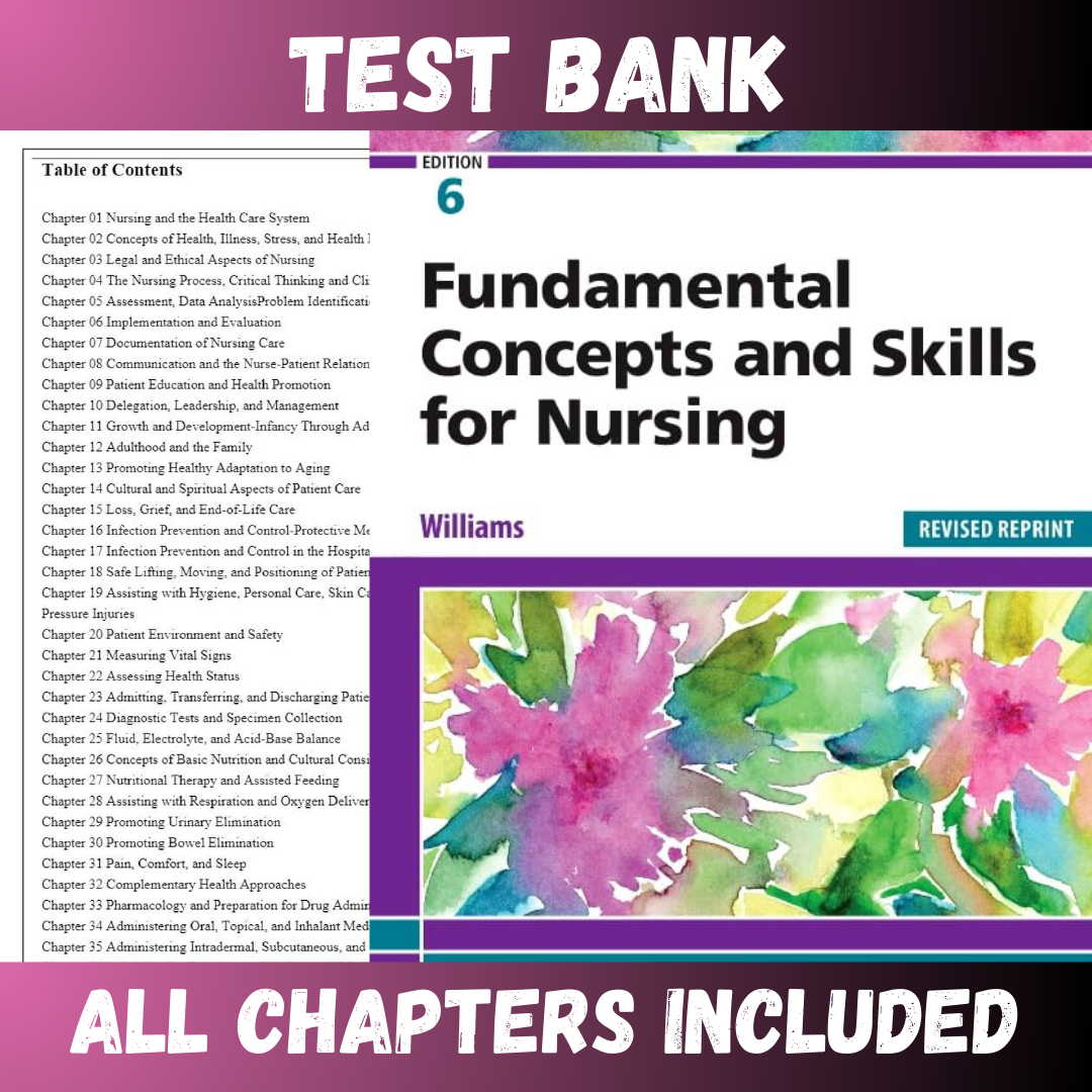 Test Bank Fundamental Concepts and Skills for Nursing, Revised Reprint, 6th Edition (Williams, 2023)