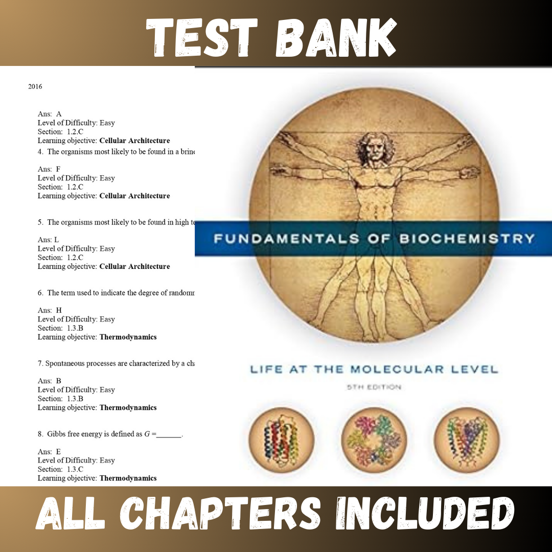 Test Bank – Fundamentals of Biochemistry Life at the Molecular Level 5th Edition by Voet
