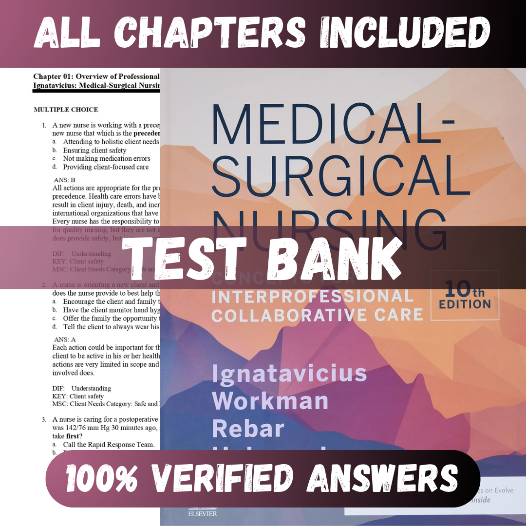 Test Bank Medical-Surgical Nursing: Concepts for Interprofessional Collaborative Care 10th Edition (Ignatavicius, 2021)