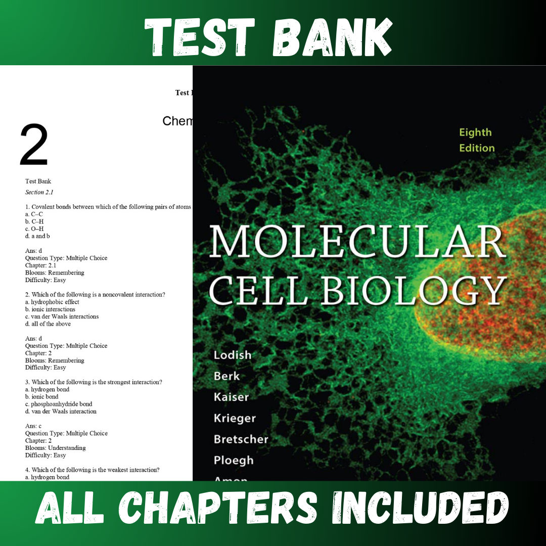Test Bank – Molecular Cell Biology 8th Edition by Berk