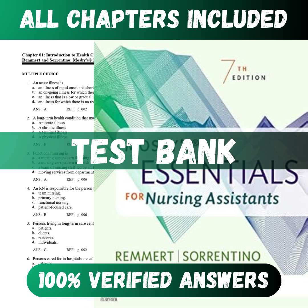 Test Bank Mosby’s Essentials for Nursing Assistants 7th Edition (Remmert, 2023)