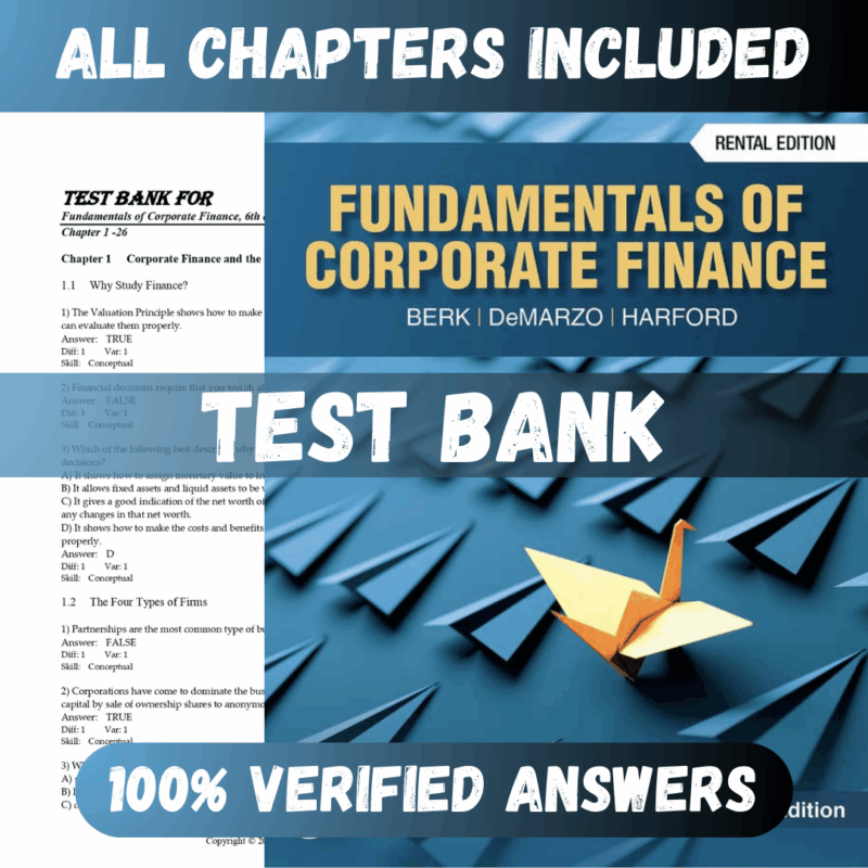 This Test Bank Is A Comprehensive Collection Of Study Questions, Available For Instant Download In Pdf Format. It Covers All Chapters, Ensuring You Have Immediate Access To High-quality Study Resources For Effective Test Preparation. Rest Assured, The Content Is Original And Includes 100% Verified Answers