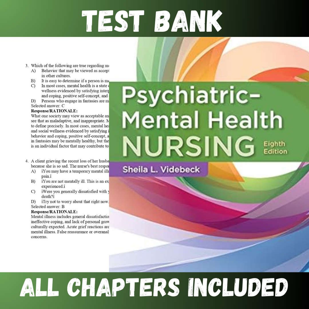 Test Bank – Psychiatric-Mental Health Nursing 8th Edition by Videbeck