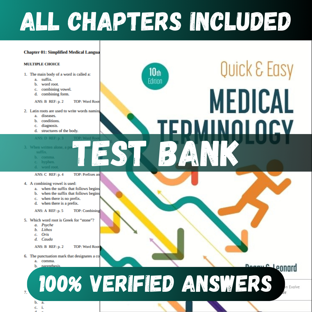 Test Bank Quick & Easy Medical Terminology 10th Edition (Peggy , 2023)